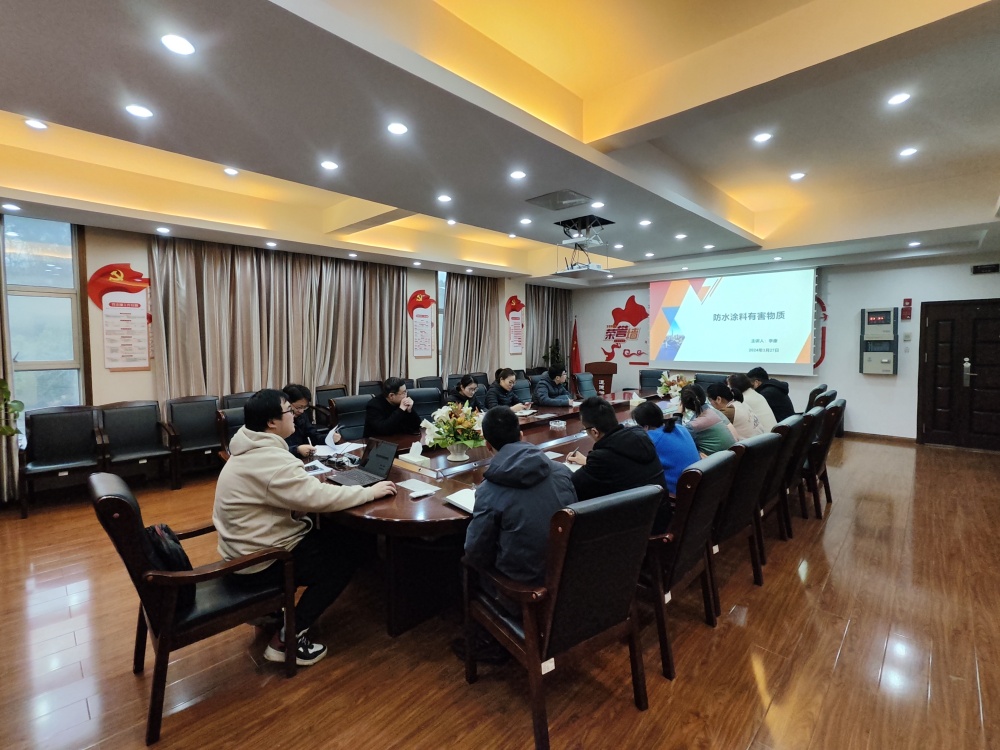 2024年3月27日下午,在檀山路检测中心二楼会议室,检测中心举办了关于《建筑防水涂料中有害物质限量》JC