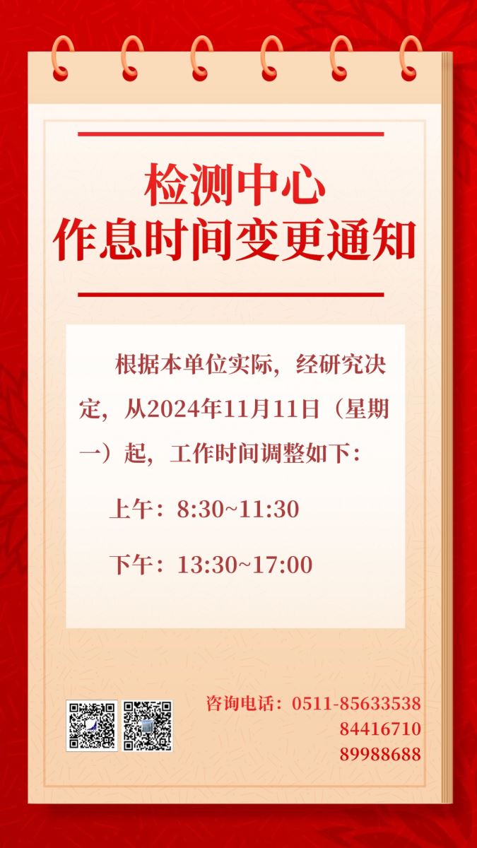 检测中心作息时间变更通知